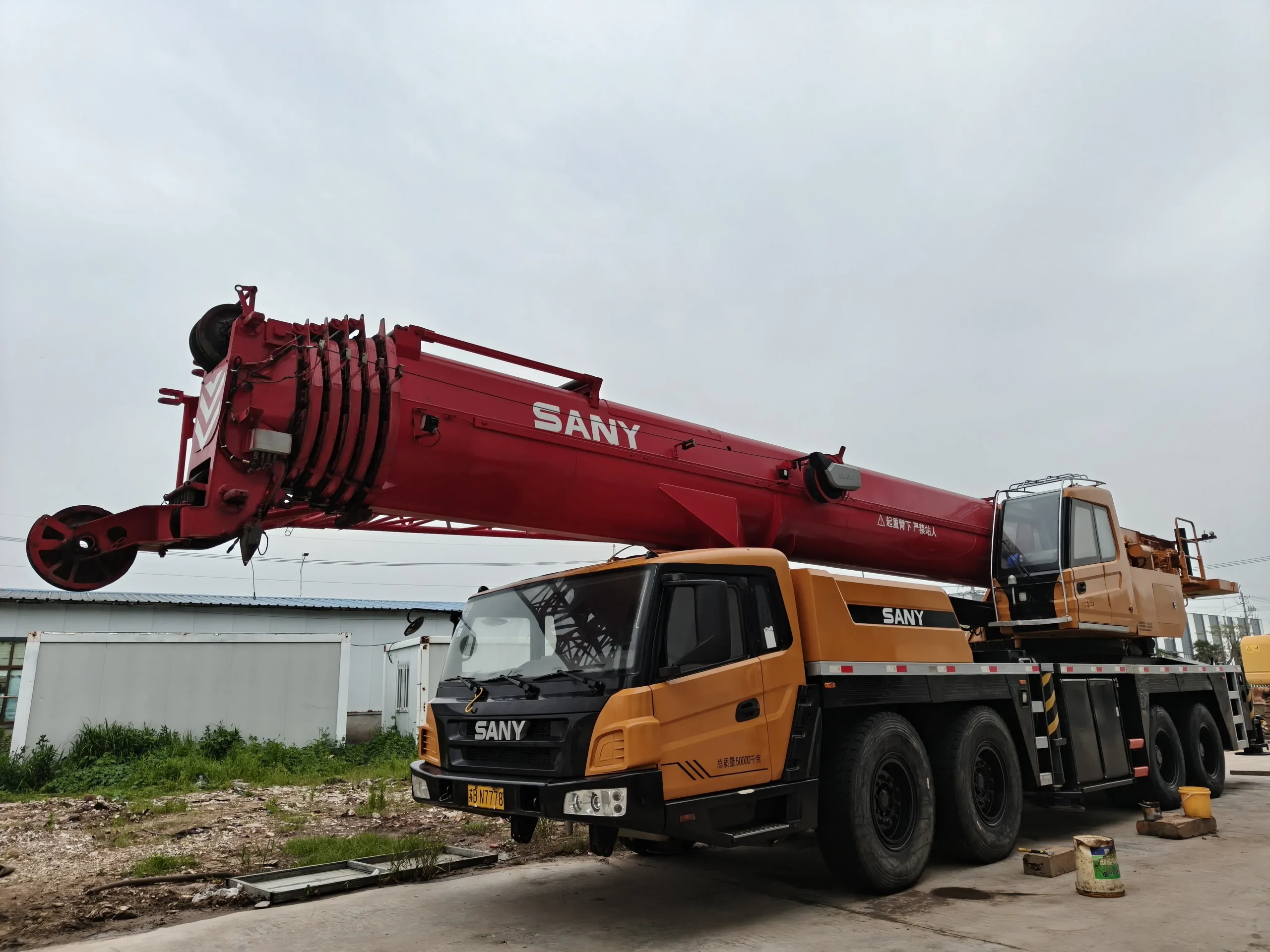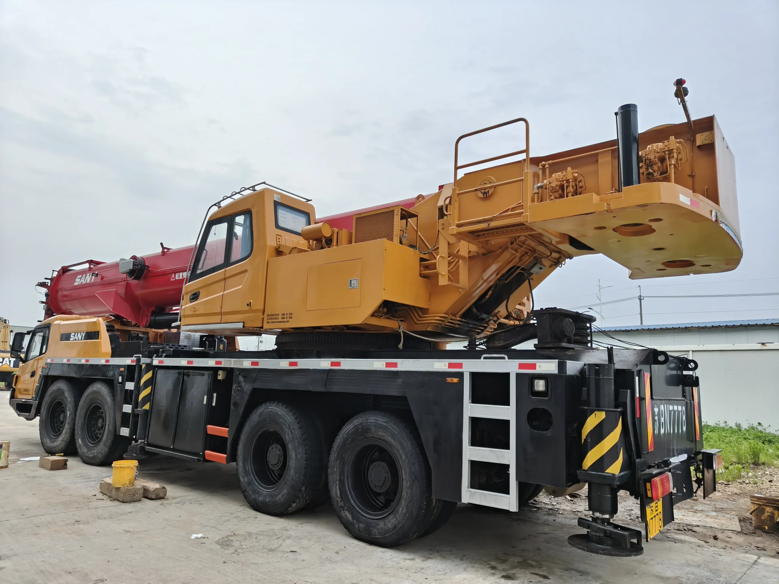 The SANY 80‑ton crane is a heavy‑duty lifting machine capable of handling loads up to 80 metric tons. It typically features a telescopic (or lattice/telescopic) boom with a variable‑length configuration, giving flexibility in boom reach and lift radius depending on the job.